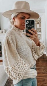 Вязаный свитер Оставьте комментарий / Вязание свитеров / От Виктория Вязаный свитер. Модель связана лицевой гладью с шишечками на широких рукавах и высокими манжетами,выполненными английской резинкой. Узор для»щишечнк’ Узор»английская резинка»