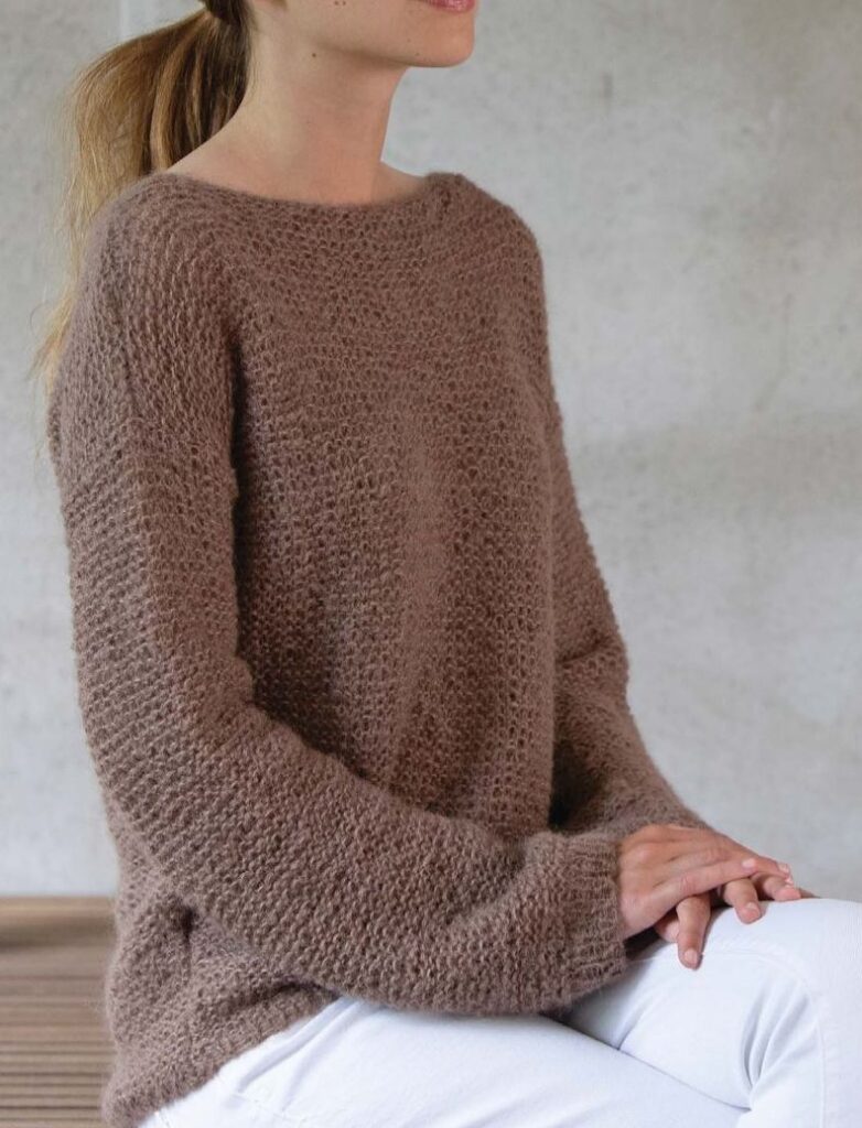 Джемпер со скосом в стиле ДЖИПАНДИ, объединяющий стильный скандинавский минимализм со сдержанной эстетикой японских традиций. Для вязания вам потребуется пряжа:69% альпака ,31% шелк 225-250г (212м/25г) коричневого цвета, круговые спицы 5,5 и 6мм. Узоры:платочная вязка,( четные и нечётные ряды вязать лицевой гладью).ОписаниеВыкройка